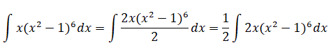 La derivata di (x2-1) è 2x ma nell'integrale c'è x. Possiamo ovviare ciò moltiplicando e dividendo per 2.
