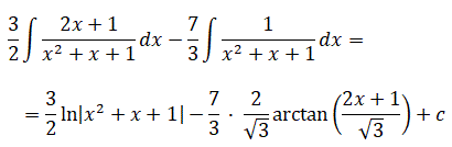 Il primo integrale porta a una funzione logaritmo mentre il secondo integrale, (vedi esempio 7), porta a una funzione arcotangente.