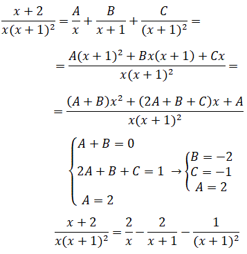 Scomponiamo la funzione integranda come somma di frazioni aventi per denominatori i fattori del denominatore.