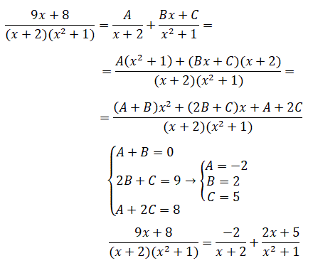dove A(x) e B(x) sono due funzioni razionali intere con coefficienti reali e prime fra loro. Se il grado del numeratore non è minore di quello del denominatore dividendo il numeratore per il denominatore si ottiene: