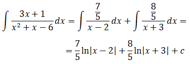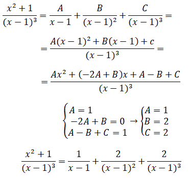 Ne segue che la funzione fratta è, a sua volta, scomponibile in una somma di frazioni integrabili in modo elementare: