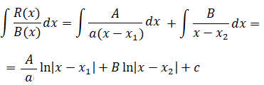 Pertanto l'integrale iniziale può essere ricondotto alla somma di un integrale di una funzione razionale intera con un integrale di una funzione razionale fratta il cui numeratore è di grado inferiore a quello del denominatore. Avendo già studiato i metodi di integrazione di funzioni razionali intere occupiamoci ora dei metodi di integrazione di funzioni razionali fratte il cui numeratore è di grado inferiore a quello del denominatore. Distinguiamo tre casi che dipendono dal grado del denominatore B(x):