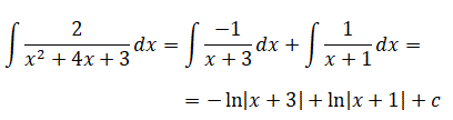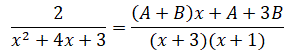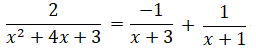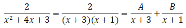 La funzione x2+4x+3 ha per radici x1=-3 e x2=-1. Possiamo allora, scomponendo il denominatore, scrivere: