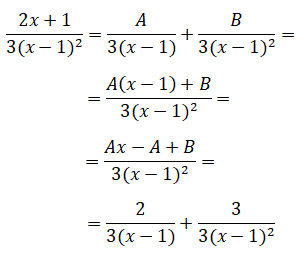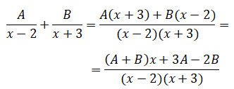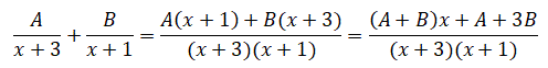 La funzione fratta iniziale e la fuzione fratta ottenuta con i numeri A e B hanno lo stesso denominatore e quindi affinchè siano uguali le due funzione fratte devono essere uguali anche i numeratori: