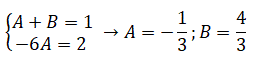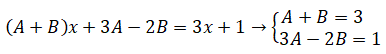 e il sistema ha per soluzione A=7/5 e B=8/5 e quindi: