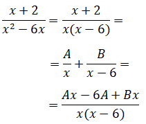 Scomponiamo la funzione fratta nella somma di due funzioni fratte:
