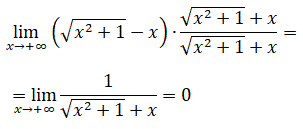 Ora, per x che tende a più infinito t presenta una indeterminazione del tipo ∞-∞ che si può eliminare con la razionalizzazione: