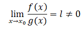cioè f(x) e g(x) tendono a zero con la stessa velocità.