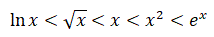 Possiamo facilmente vedere quale funzione ha una crescita maggiore delle altre e quindi stabilire una scala di confronto tra i limiti delle funzioni per x che tende a più infinito.