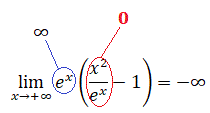 Ora, essendo x2 un infinito di ordine inferiore rispetto a ex il rapporto x2/ex va a zero per x che tende a più infinito e quindi il valore del limite è: