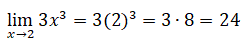 E naturalmente per ogni x0 interno all'intervallo [-2, 2] il limite della fuzione per x che tende a x0 è uguale al valore f(x0) della funzione calcolata in x0. Pertanto se una funzione è continua in un punto allora determinare il limite della funzione in quel punto è un'operazione molto semplice. Vale la seguente importante proprietà: