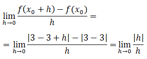 Essendo la derivata sinstra diversa dalla derivata destra la funzione f(x)=|x-3| pur essendo continua in x0=3 non è derivabile in quel punto.