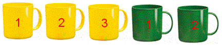 Supponiamo di avere tre tazze di colore giallo (uguali tra loro) e due tazze di colore verde (uguali tra loro) e di voler metterle in fila.