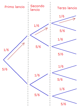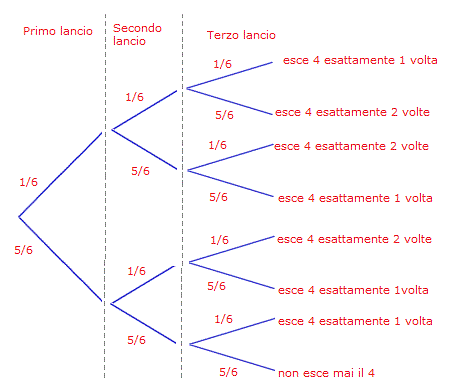 L'evento E="esce 4 almeno una volta lanciando tre volte un dado" equivale a: