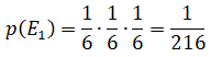 E1 = "esce 4 esattamente 1 volta lanciando tre volte un dado"