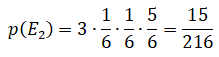 E2 = "esce 4 esattamente 2 volte lanciando tre volte un dado"