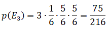 E3 = "esce 4 esattamente 3 volta lanciando tre volte un dado"