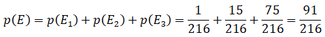 E dato che tali eventi sono incompatibili sommare le loro probabilità:p(E) = p(E1 + E2 + E3) = p(E1) + p(E2) + p(E3)
