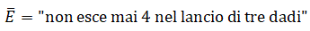 E="esce 4 esattamente 1 volta o esattamente 2 volte o esattamente 3 volte lanciando 3 volte un dato"