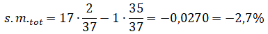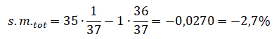 Se si vince il banco paga 35 volte la posta e restituisce la puntata. La probabilità di vincere è 1/37 e quella di perdere è 36/37. Se ogni puntata del giocatore è di 1 € la speranza matematica totale è: