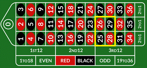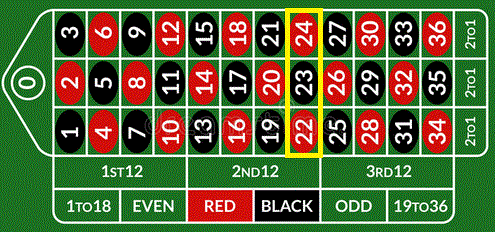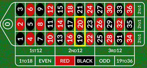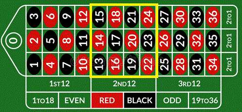 Dozzina. Si punta su una delle tre dozzine (1-12, 13-24, 25-36), se uno dei dodici numeri scelti esce il banco paga 2 volte la posta e restituisce la puntata.