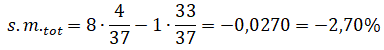La probabilità di vincere è 4/37 e quella di perdere è 33/37. Se ogni puntata del giocatore è di 1 € la speranza matematica totale è: