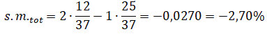 La probabilità di vincere è 12/37 e quella di perdere è 25/37. Se ogni puntata del giocatore è di 1 € la speranza matematica totale è: