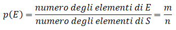 Indicando con m il numero degli elementi di E ed n il numero degli elementi dello spazio campione S, possiamo anche dire che m è il numero degli esiti favorevoli all'evento e n è il numero degli esiti possibili e in base alla definizione si ha: