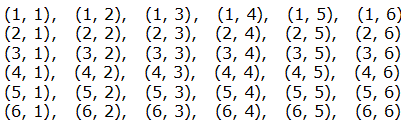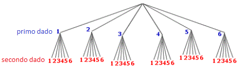L'esperimento consiste nel lancio contemporaneo di due dadi e per ogni prova bisogna tener conto della somma dei due numeri che si presentano sulla faccia superiore di ogni dado. Osservando il diagramma ad albero della seguente figura ci rendiamo conto che gli esiti possibili sono 6 ⋅ 6 = 36.