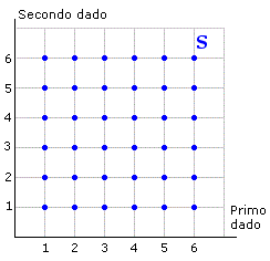 quello relativo al lancio di due dadi è S x S ed ha quindi 6 ⋅ 6 = 36 elementi. Lo spazio campione è un prodotto cartesiano di due insiemi; in questo caso conviene rappresentarlo graficamente con un diagramma cartesiano anzichè con un diagramma ad albero.