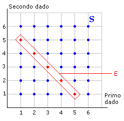 Dobbiamo tener presente che la stessa somma 6 si può ottenere in vari modi, cioè l'eventoE = somma 6 con due dadi