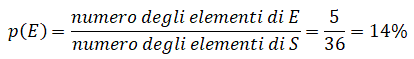 Abbiamo dunque 5 esiti favorevoli su 36 esiti possibili. La probabilità di somma 6 è allora:
