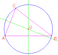 I tre assi dei lati di un triangolo si incontrano in uno stesso punto O, il circocentro, che è equidistante dai tre vertici. Quindi