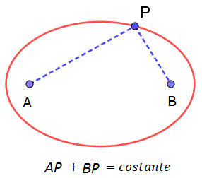 Nella geometria euclidea l'ellisse è definita come il luogo dei punti P le cui distanze da due punti dati A e B detti fuochi hanno la stessa somma.
