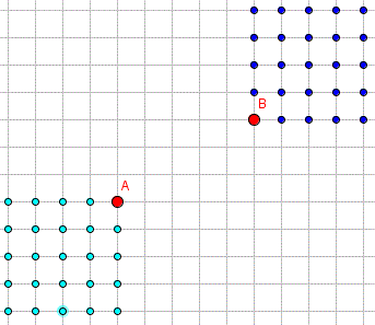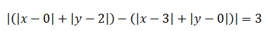 Tutti i punti del piano che soddisfano quest'equazione appartengono all'iperbole di taxi che ha i fuochi in A(0, 2), B(3, 0) e differenza costante d=3. Ad esempio, il punto di coordinate (1, 2) soddisfa l'equazione: