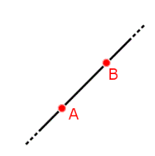 Nella geometria euclidea se prolunghiamo indefinitamente un segmento AB dall'una e dall'altra parte otteniamo una linea retta o più semplicemente una retta. Questa è anche l'unica retta che passa per i due punti A e B.
