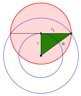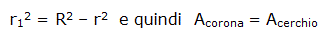 Se indichiamo con r1 il raggio del cerchio che ha per diametro la corda tangente al cerchio interno della corona circolare, l'area di tale cerchio sarà data da: