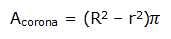 Se indichiamo con R il raggio del cerchio esterno della corona circolare e con r il raggio del cerchio interno della corona circolare, l'area della corona circolare sarà data da: