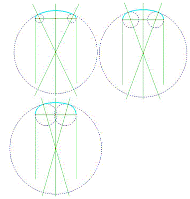 Vediamo allora con una serie di disegni come si presenta l'arco con una costruzione più precisa in cui variano le posizioni dei centri e le lunghezze dei raggi.