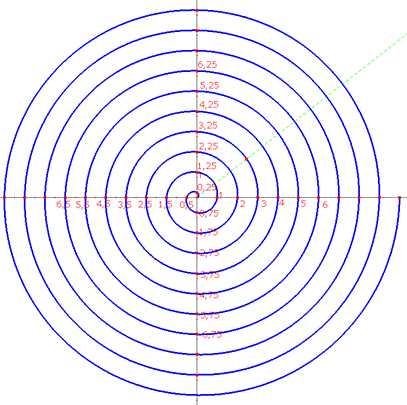 Osserviamo una spirale di Archimede con passo 1 in un riferimento cartesiano. Che cosa notiamo?