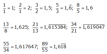 Come s'intuisce tale rapporto tende ad avvicinarsi sempre di più al numero aureo.