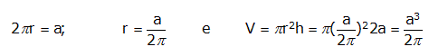 Il secondo cilindro ha altezza 2a e circonferenza di base uguale ad a. Applicando lo stesso procedimento di prima si ha: