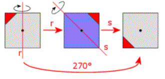 Con una rotazione di 270°. In altre parole, l'effetto dei due ribaltamenti è equivalente a una sola rotazione di 270°. In generale componendo due ribaltamenti si ottiene una rotazione.
