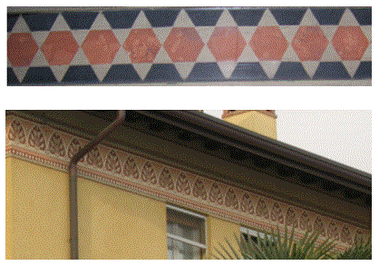Si vedono spesso riprodotti sulle facciate dei palazzi disegni o motivi che si ripetono periodicamente in una sola direzione. Una decorazione periodica di questo tipo è chiamata fregio.