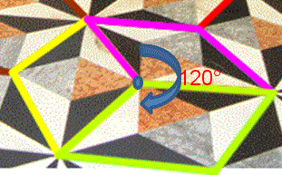 S'intuisce che ogni rombo si sovrappone perfettamente a quello adiacente con una rotazione di 120° oppure 240° rispetto al centro della maglia esagonale.