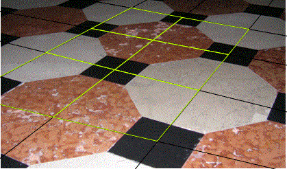 Inserendo il modulo all'interno della camera di specchi i nostri occhi vedranno oltre al modulo tutte le immagini riflesse che insieme danno la sensazione di vedere la pavimentazione. In altre parole, la camera di specchi funziona come un caleidoscopio e genera immagini multiple simmetriche per riflessioni e rotazioni della figura inserita al suo interno.
