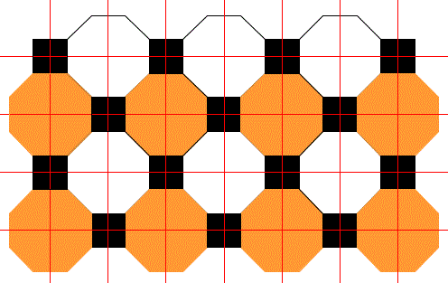 Che cosa osserviamo? Un modulo quadrato (costituito da due pentagoni e due quadrati) che si ripete.
