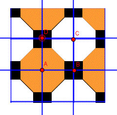 La ripezione del modulo avviene mediante riflessioni rispetto alle quattro rette che contengono i lati del modulo insieme a tutte le isometrie che si ottengono per composizione delle quattro riflessioni. Ricordiamoci che componendo due riflessioni rispetto a rette parallele si ottiene una traslazione e componendo due riflessioni rispetto a rette incidenti si ottiene una rotazione. Nel nostro caso il vettore delle traslazioni hanno direzione parallela ai lati del modulo e lunghezza doppia del lato e le rotazioni sono di 180° intorno ai vertici del modulo e dei moduli riflessi.