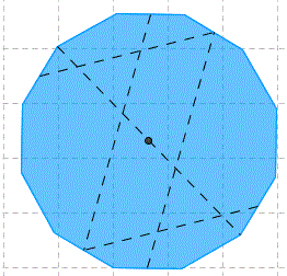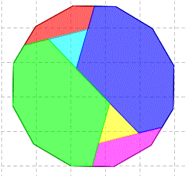 Dopo aver tacciate una diagonale e alcuni segmenti che uniscono i punti medi di alcuni lati il dodecagono viene diviso in sei parti.