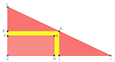 Indichiamo le misure di AB con a, di BC con b e di EF = HI con x. I due triangoli rettangoli AED, DIC sono sia equivalenti